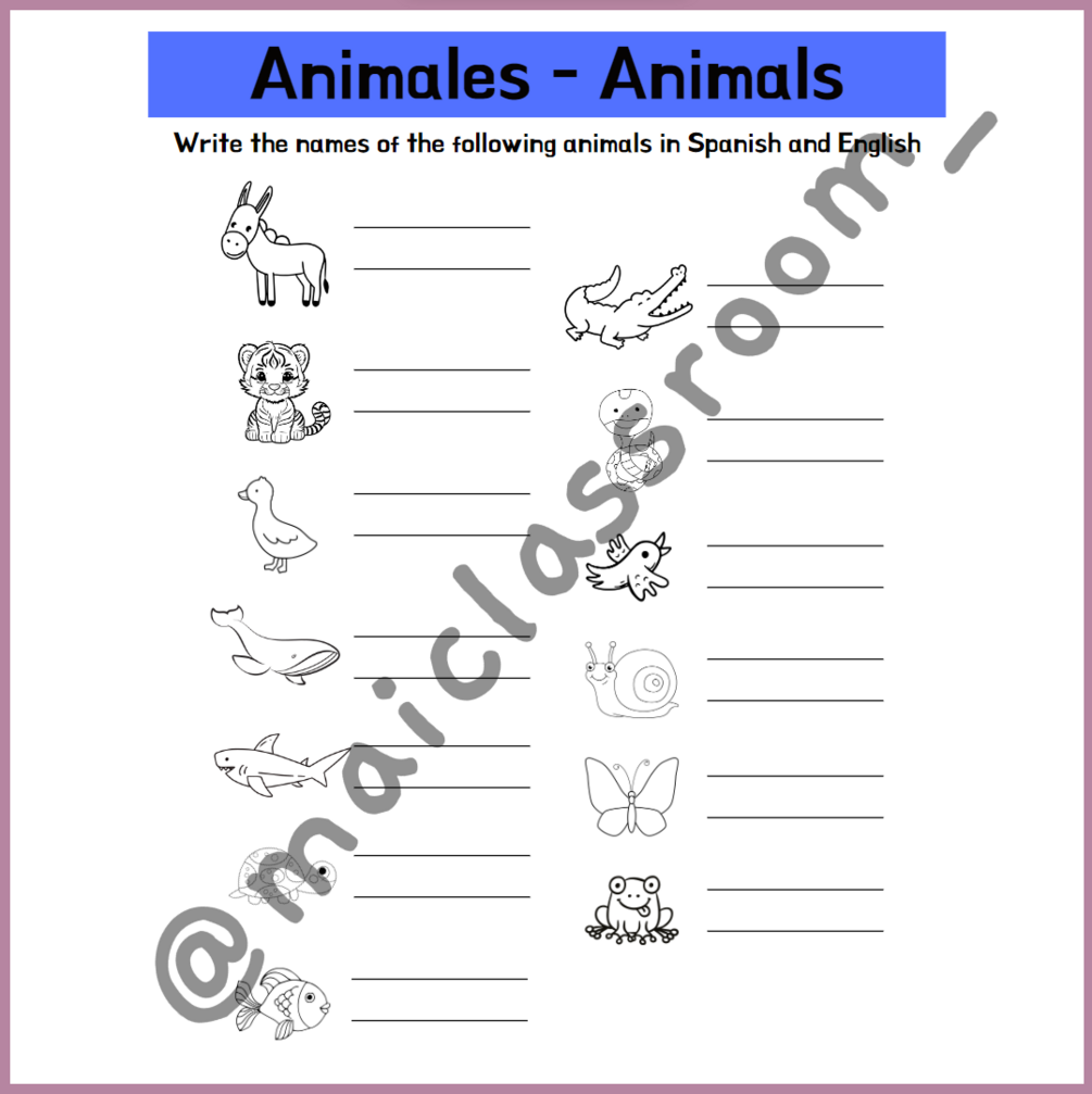 [CAS] Escribe en castellano e inglés el nombre que corresponde a cada animal.