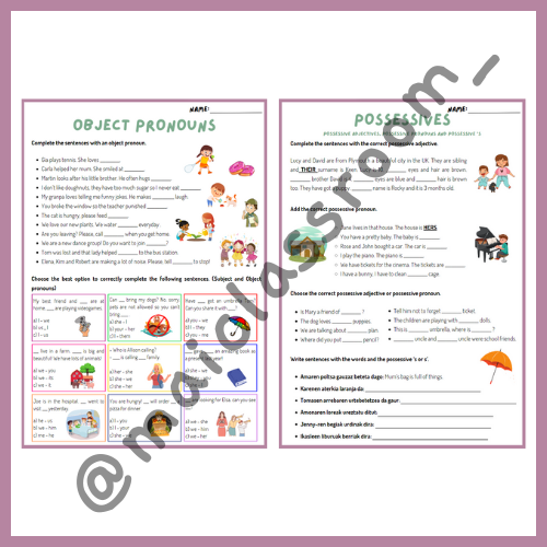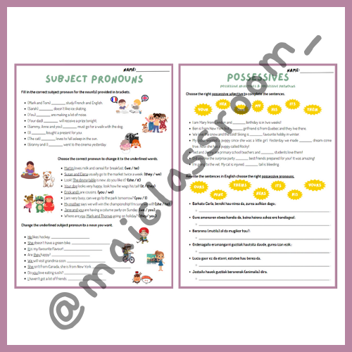 [EN] With this resource you will learn to use the personal pronouns and the possessives correctly. In addition to theoretical explanations, you will find a variety of activities to put into practice what you've learned and you will have their answerkeys too. Want to start working?